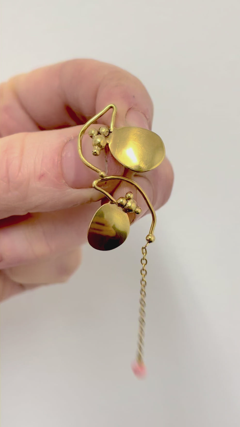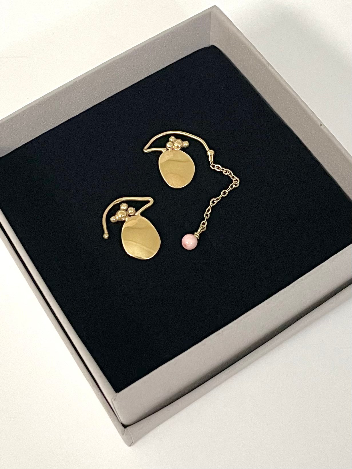 Curly with chain and coral - odd pair. the earrings are designed and handcrafted in my workshop in Svendborg, Denmark.