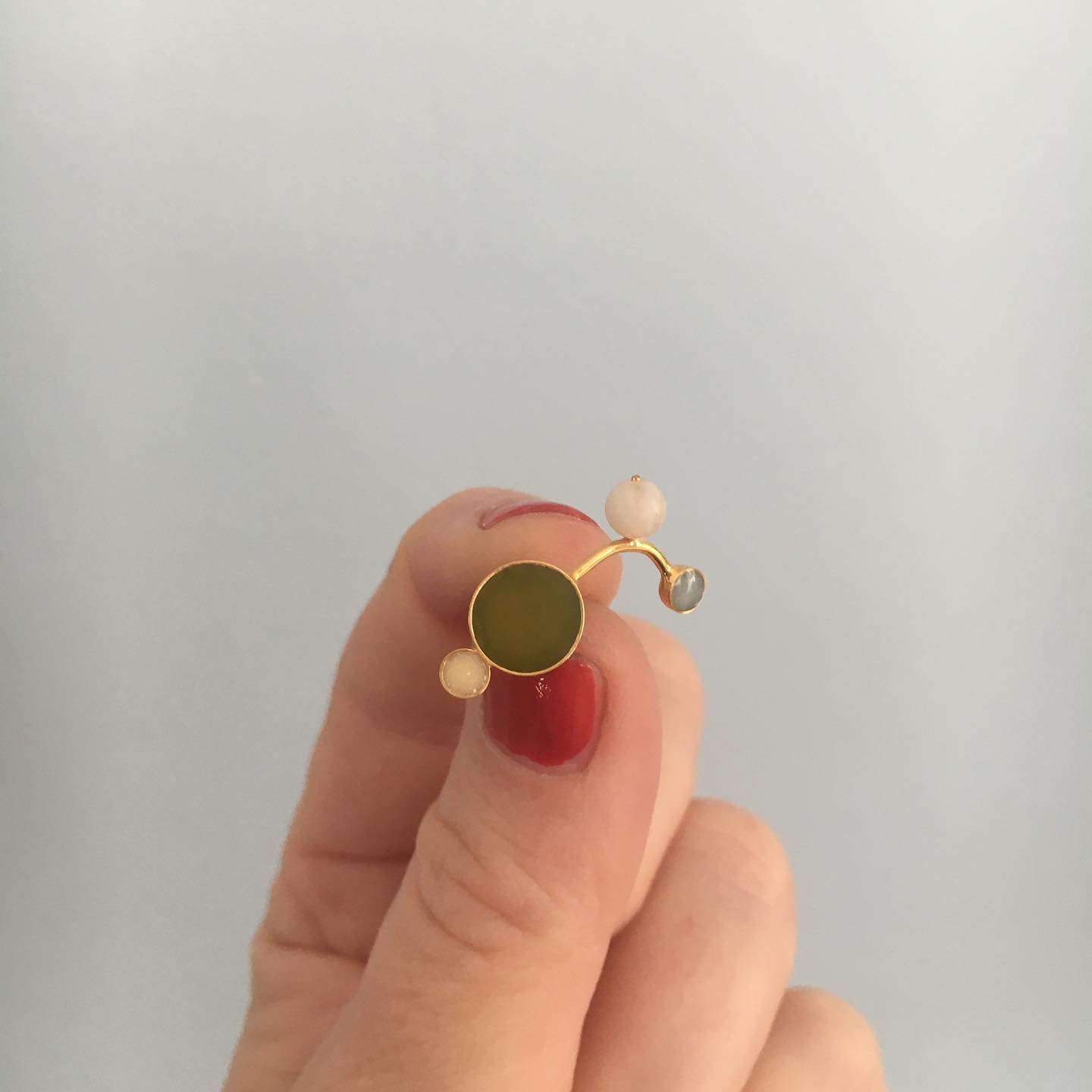 Materials: Gold-plated silver or silver. Soy-based resin. Sunstone